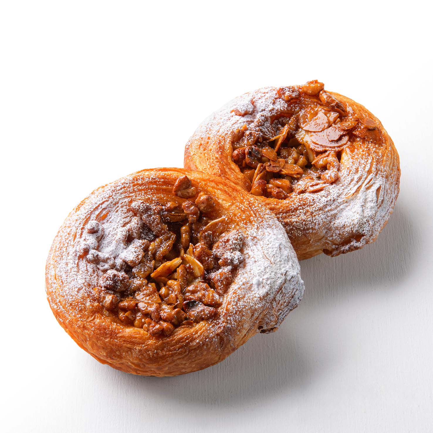 キャラメルナッツ(くるみ・アーモンド)をたっぷりと乗せ、香ばしく焼き上げた秋向けのデニッシュです。